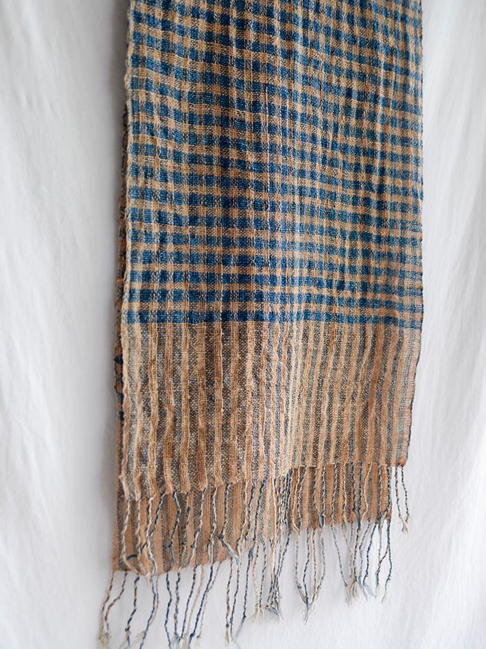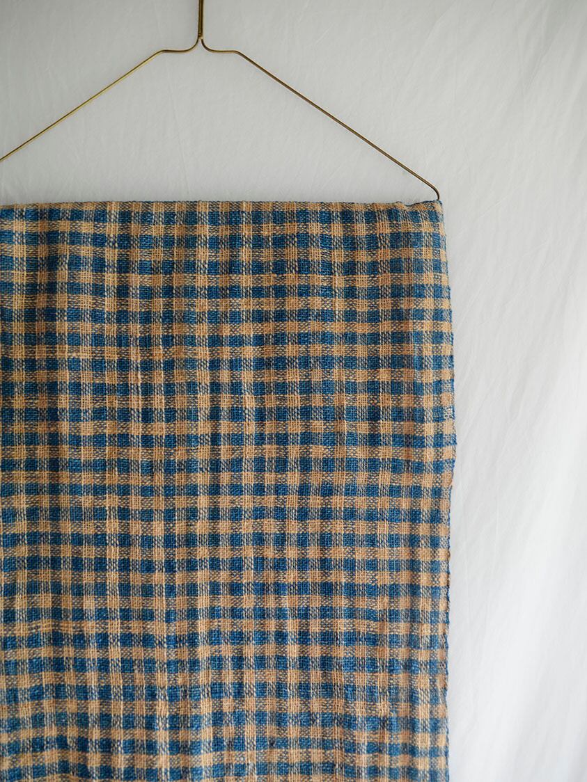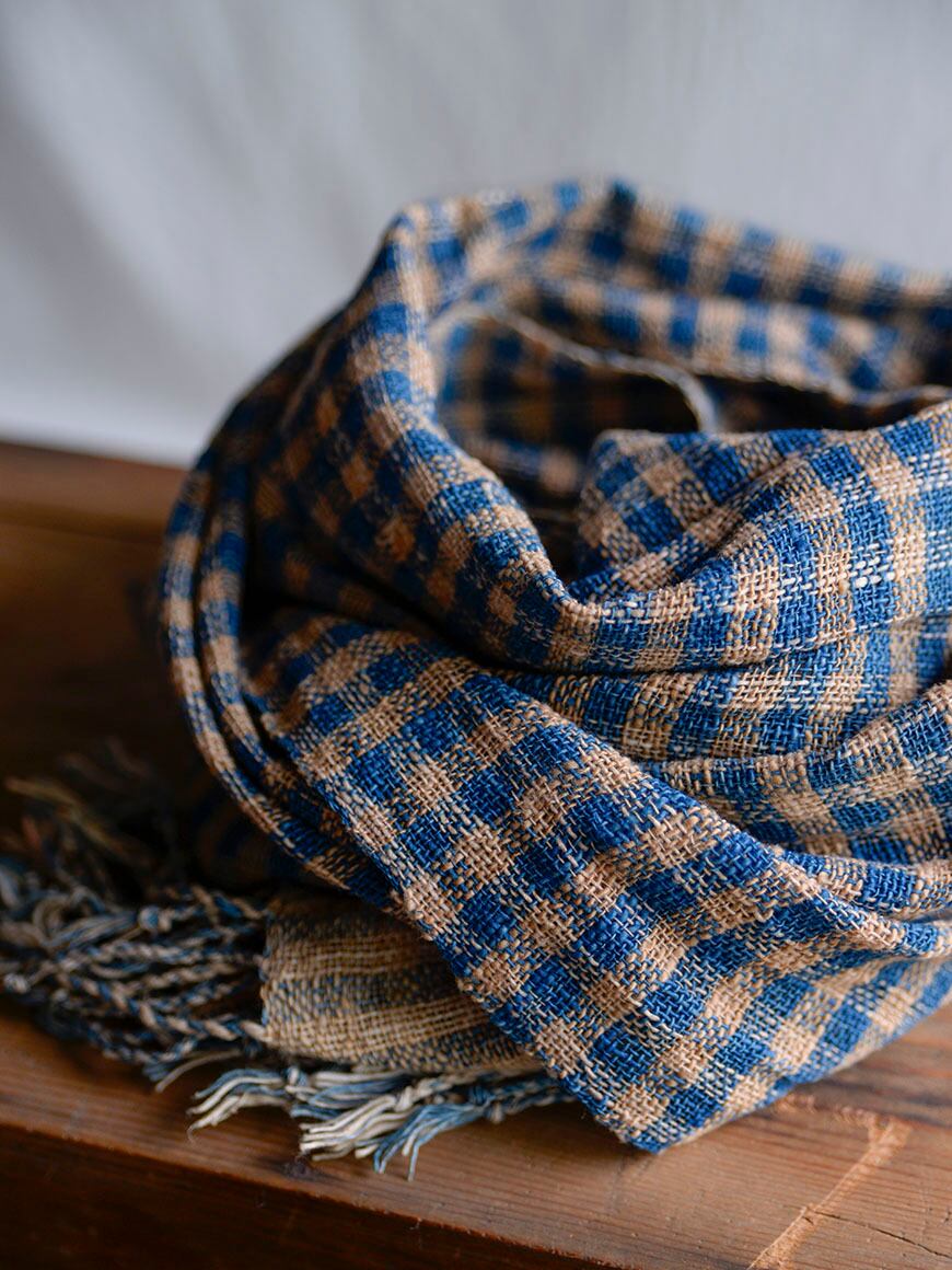 藍と茶綿のチェック柄の配色がとても美しいタイ・ルー族のオーガニックコットンストールです。
