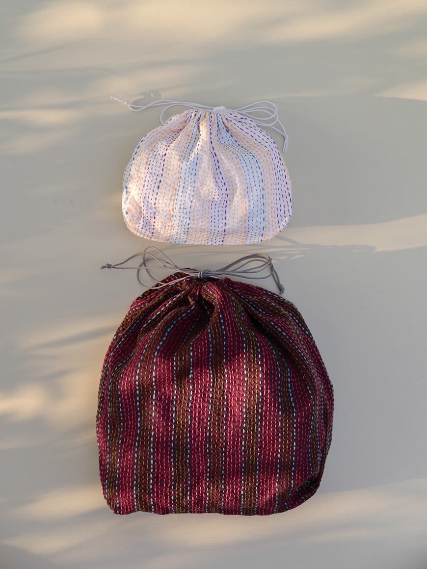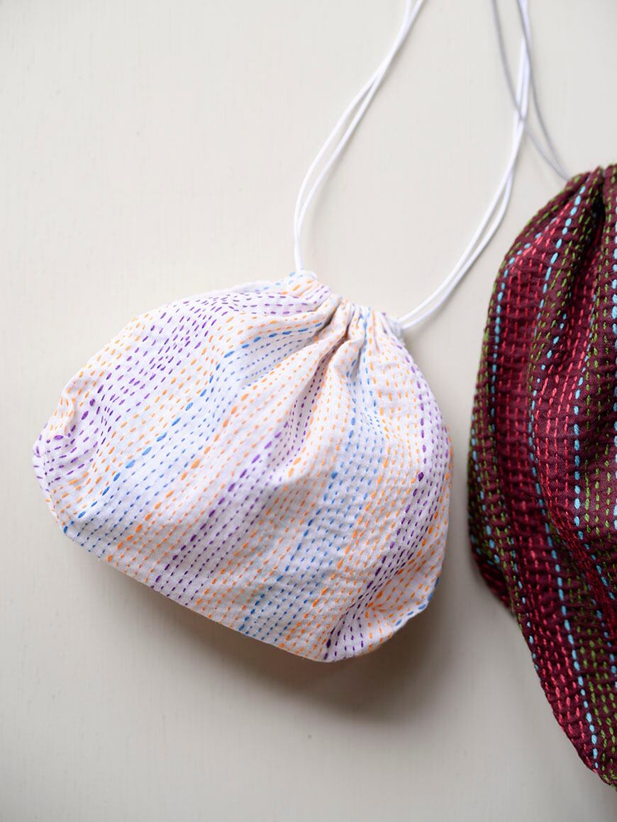 インドベンガル地方、村の女性達による刺子が美しい生地を使った巾着セット