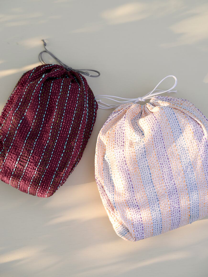 インドベンガル地方、村の女性達による刺子が美しい生地を使った巾着セット