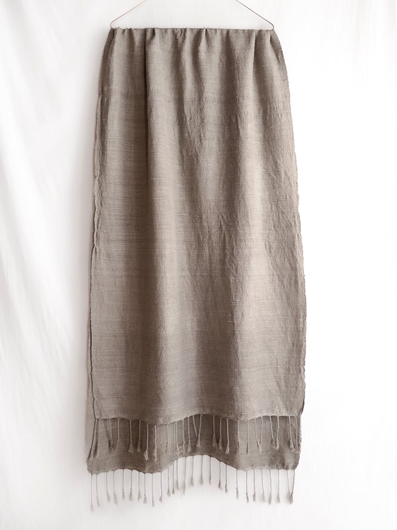 手紡ぎや手織りの布は、機械で作られたものとは異なり、糸の太さがところどころ違ったり、織の密度が均一ではないものなどがほとんどです。また、職人ひとりひとりによっても仕上がりが違います。それらが素朴な風合いや纏った時の心地よさを生み出していると考えています。