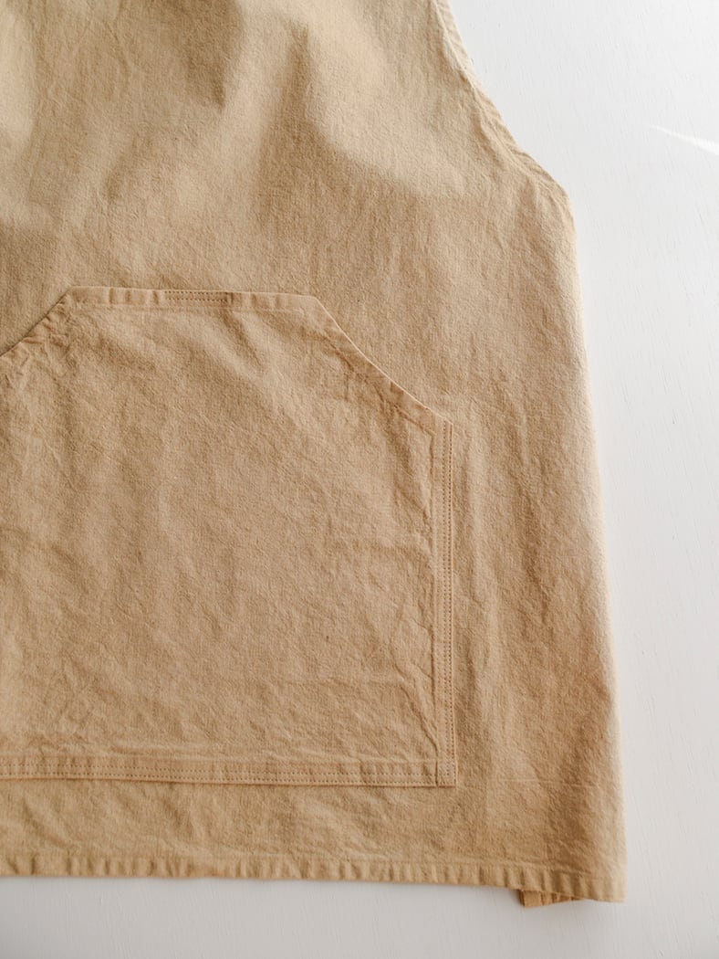 様々な生地で制作してきましたが程よく厚みとハリ感のある、リネンコットン生地がお勧めです。ショート丈モデルで大変動きやすく様々なシーンでお使いいただけるエプロンです。