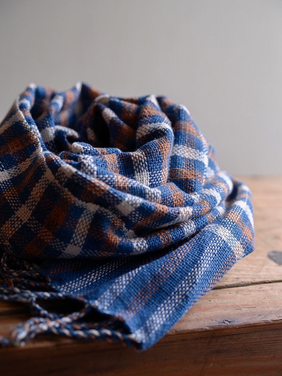 手紡ぎ手織りの、柔らかい織り目が素朴な佇まいです。