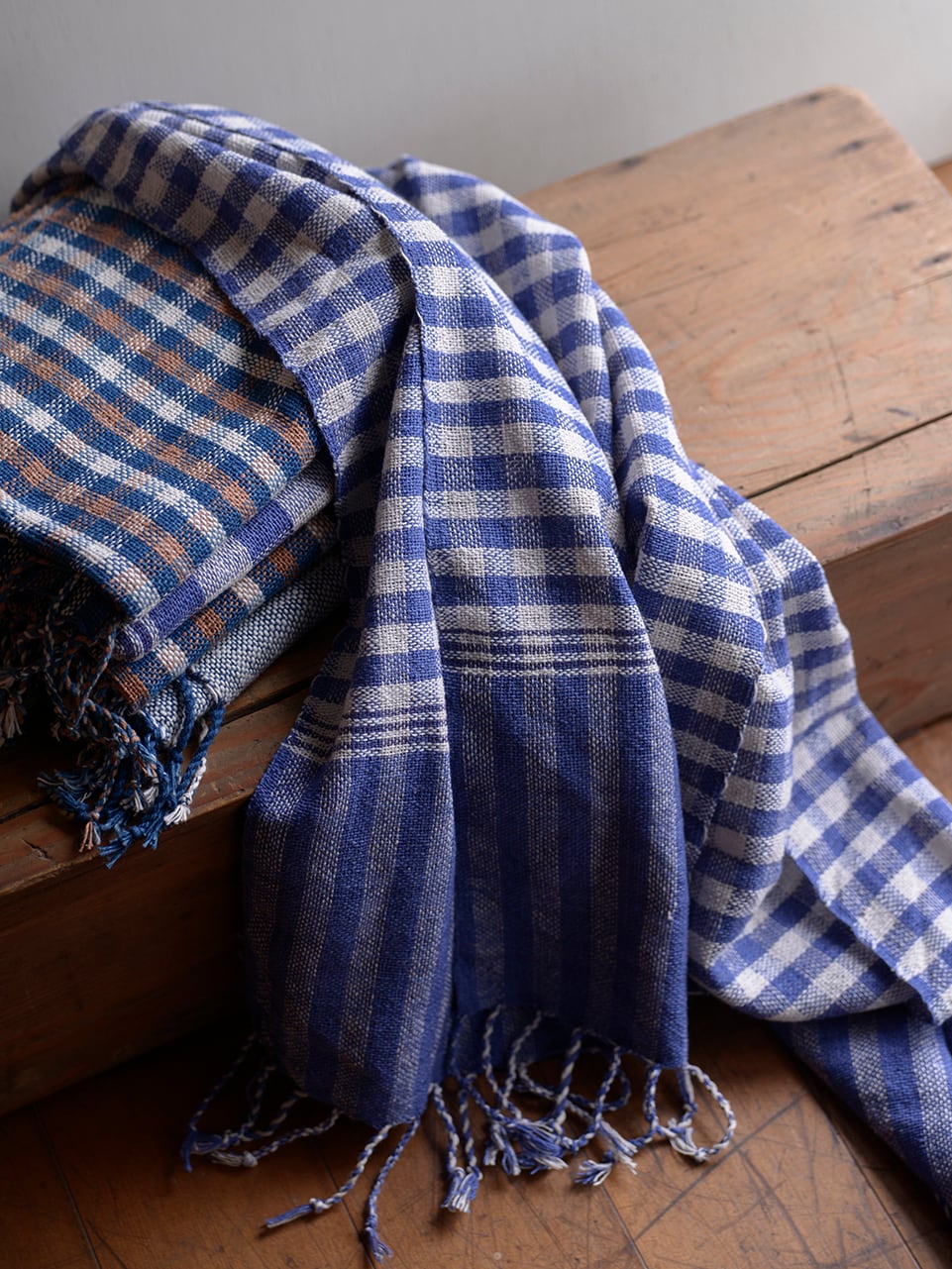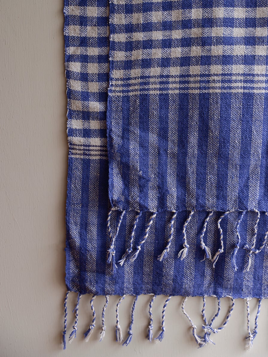 手紡ぎ手織りの、柔らかい織り目が素朴な佇まいです。