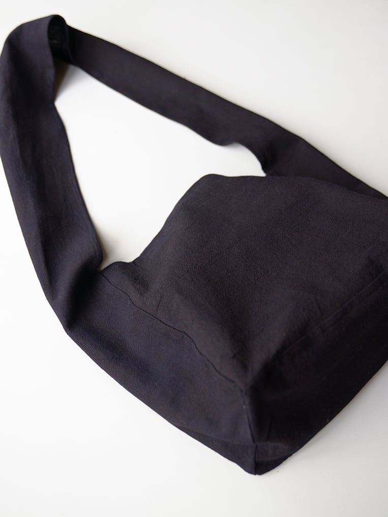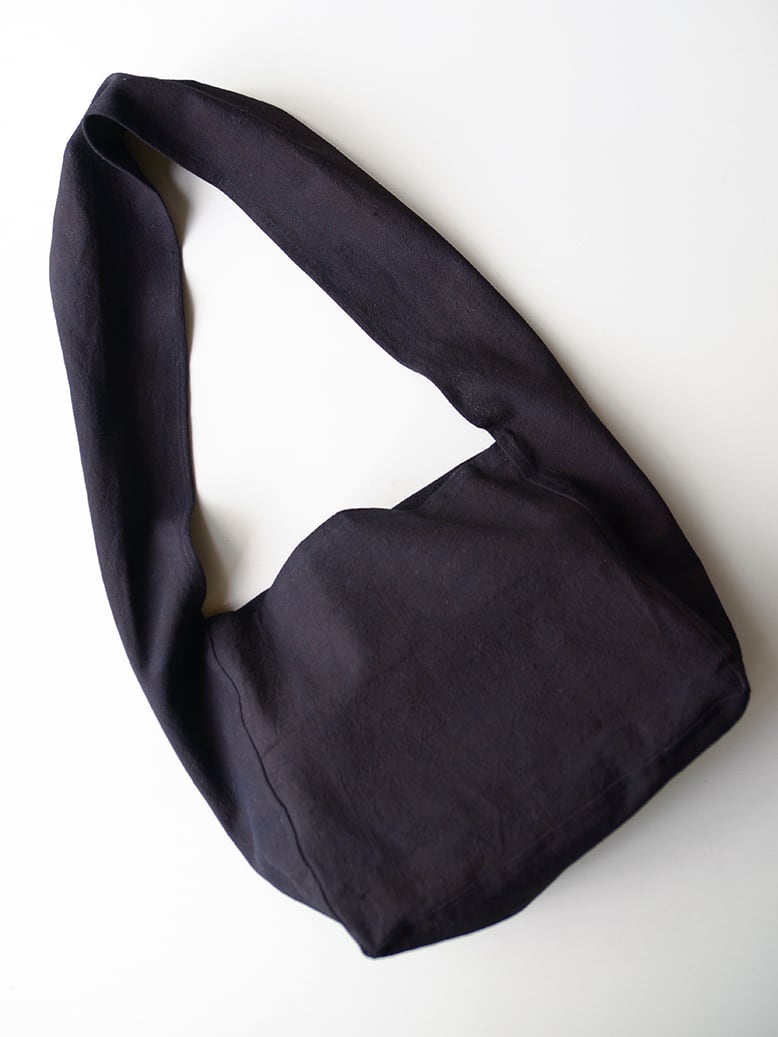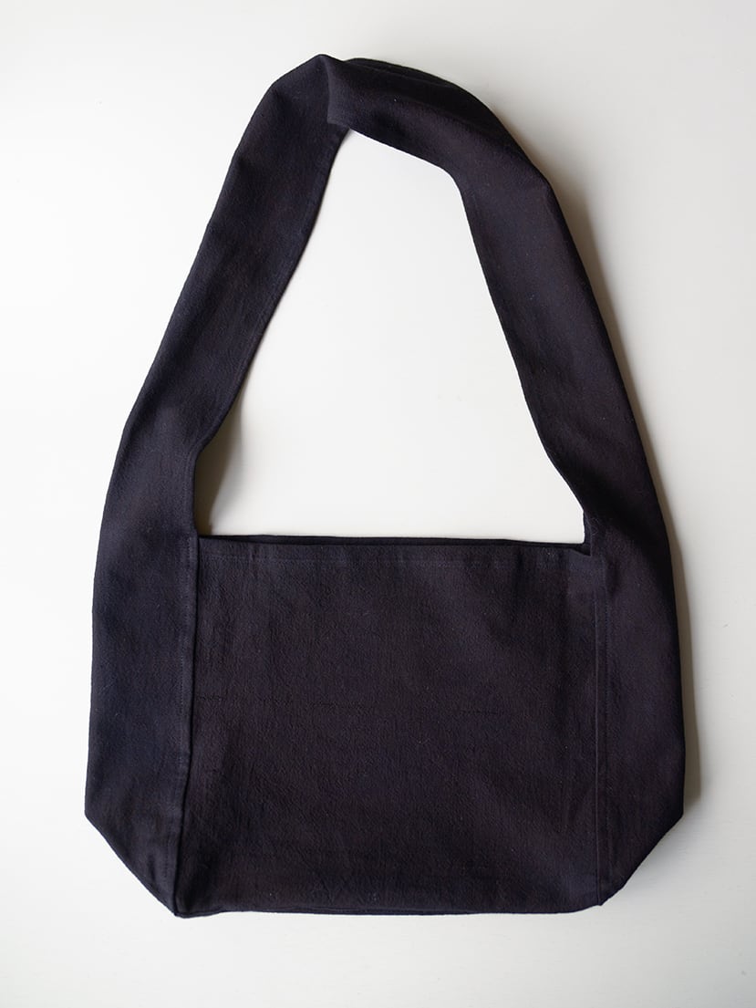 その布で製作したショルダーバッグ、なるべく無駄がでないカタチに落としこんで、使い勝手のいいサイズに仕上げました。